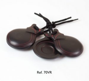 Castañuelas profesionales de fibra, con doble caja de resonancia. Fibra negra con vetas en rojo. REF. 70 V/R