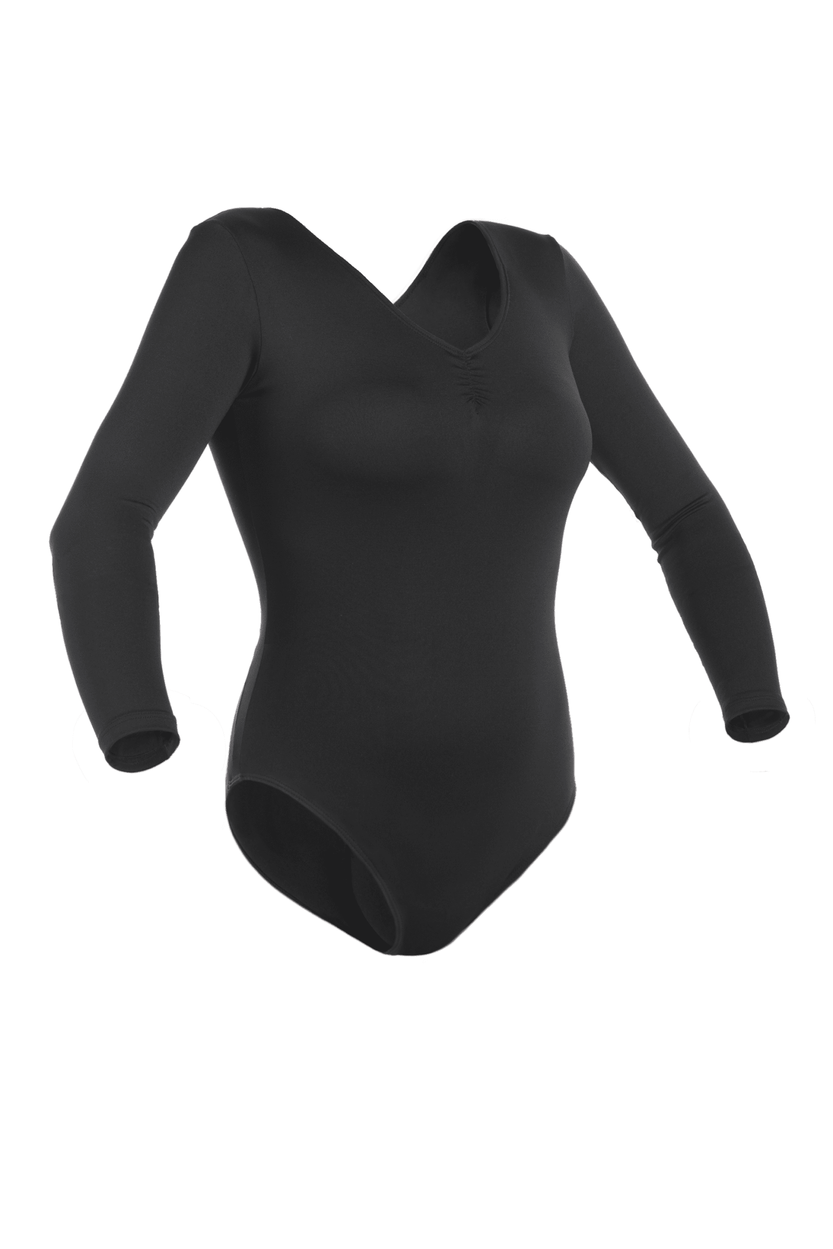 Maillot de flamenco con manga larga. Frunce con cortes en la espalda para mayor adaptabilidad. Composición: Elastano 92% y Poliéster 8%. Gran calidad.