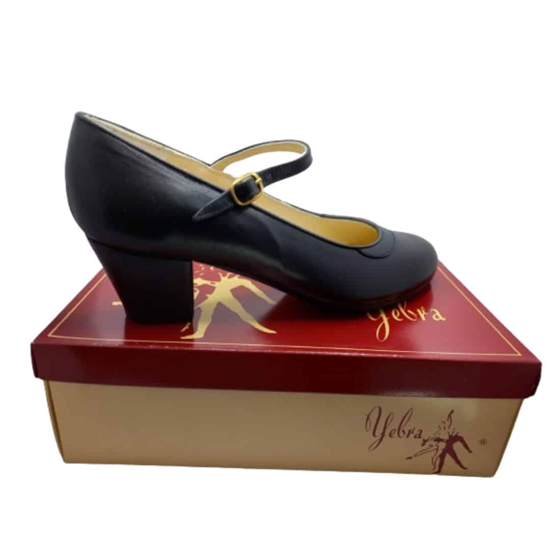 Zapatos de flamenco profesionales Neus, escote redondo, 1correa, en piel negro. Tacón cubano (6cm). Suela cosida a mano. Nº34 y 1/2. Entrega en 24-48h
