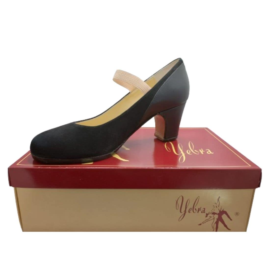 Zapatos de flamenco profesionales María. Nº 35 y 1/2. De color negro, en ante y piel de primera calidad. Tacón normal (6,5cms).