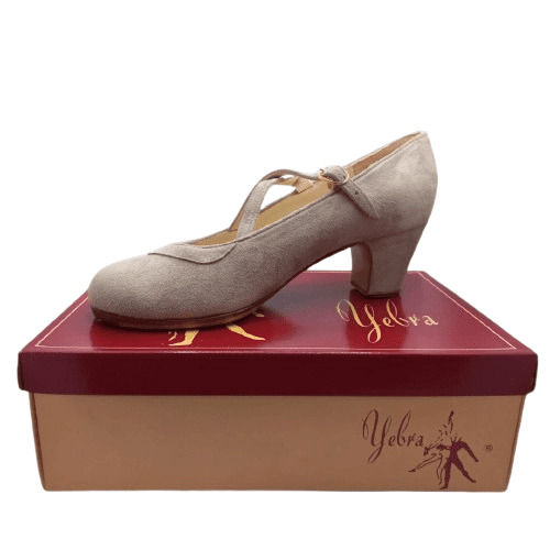 Zapatos de flamenco profesionales Ana Nº36, ancho especial y suela cosida. En ante. Color beige. Tacón bajo (6cm).